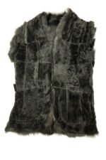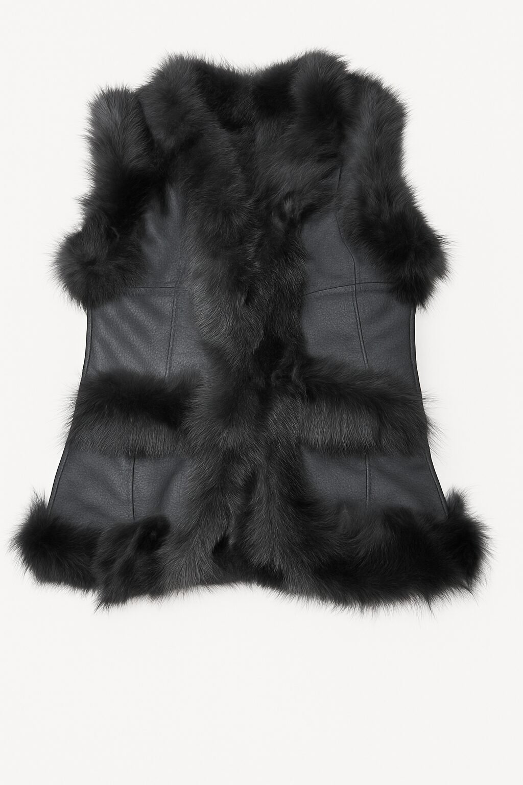 Elegant black leather vest with natural fur detailing, perfect for winter layering.
